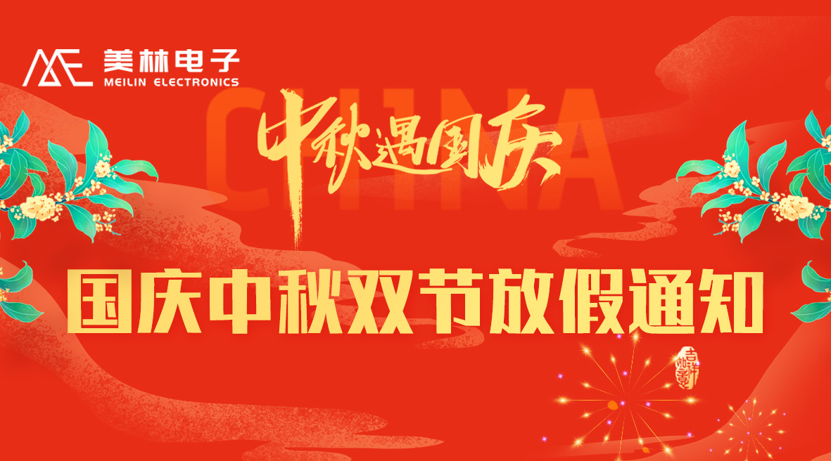 尊敬的各位客戶、各合作伙伴: 團圓慶華誕,雙節(jié)共歡騰。國慶中秋雙節(jié)將至,根據(jù)國家有關(guān)規(guī)定結(jié)合公司實際,放假安排如下:10月1日至10月8日放假休息,共8天,10月9日(星期四)正常上班。 感謝您一如既往的信任和支持。美林電子祝您財源廣進(jìn),團圓喜樂,闔家幸福,萬事如意!